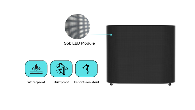 Each counter utilises GOB (Glue-on-Board) technology, sealing the LED surface with a transparent protective layer. This design prevents pixel damage, improves impact resistance, and enhances waterproofing and dust protection — ensuring long-term reliability even under heavy public interaction.