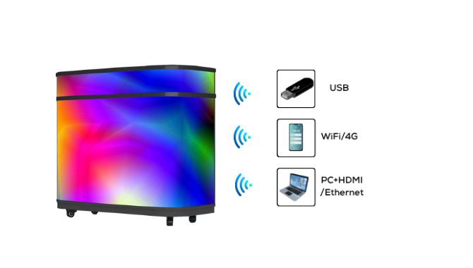 The Front Desk LED Counter Display is designed for straightforward deployment. No specialist installation or calibration is required — simply plug in, upload your content via USB, Wi-Fi, or HDMI, and the display is ready to perform. This makes it ideal for temporary events, trade shows, and retail environments where speed and mobility are essential.